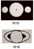 Two years later, the Earth passed through the plane of the rings making them invisible. Galileo was mystified as to what had happened to the planet and its ‘ears’. He wondered if perhaps Saturn had ‘swallowed his children’. Thеse words referred to the myth of the Titan Saturn who devoured his offspring to forestall the prophesy of them overthrowing him.