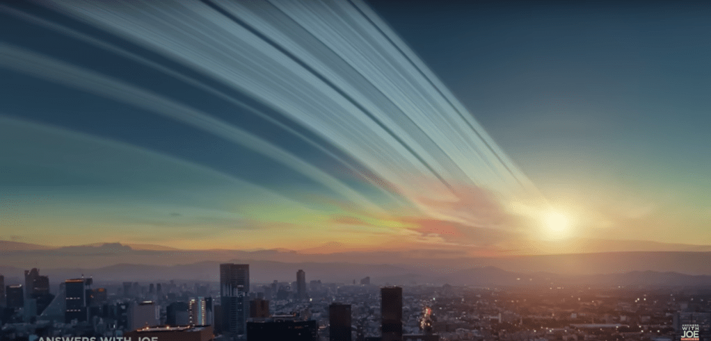Imagine this – you go outside, you look up and see a big line of rings across the sky!