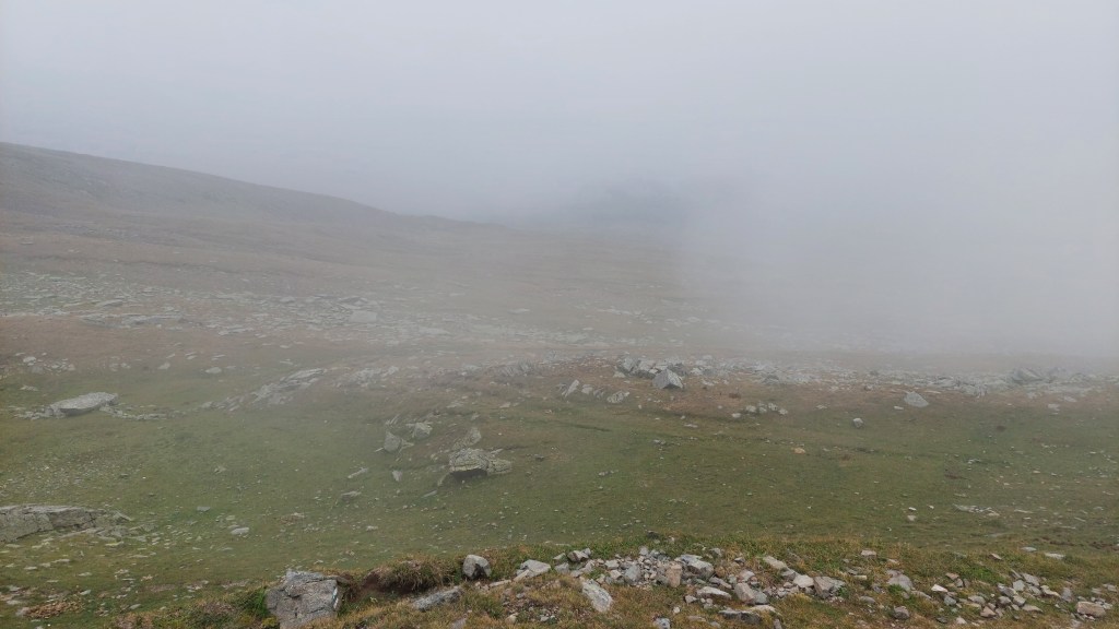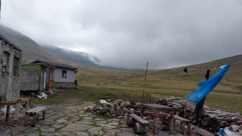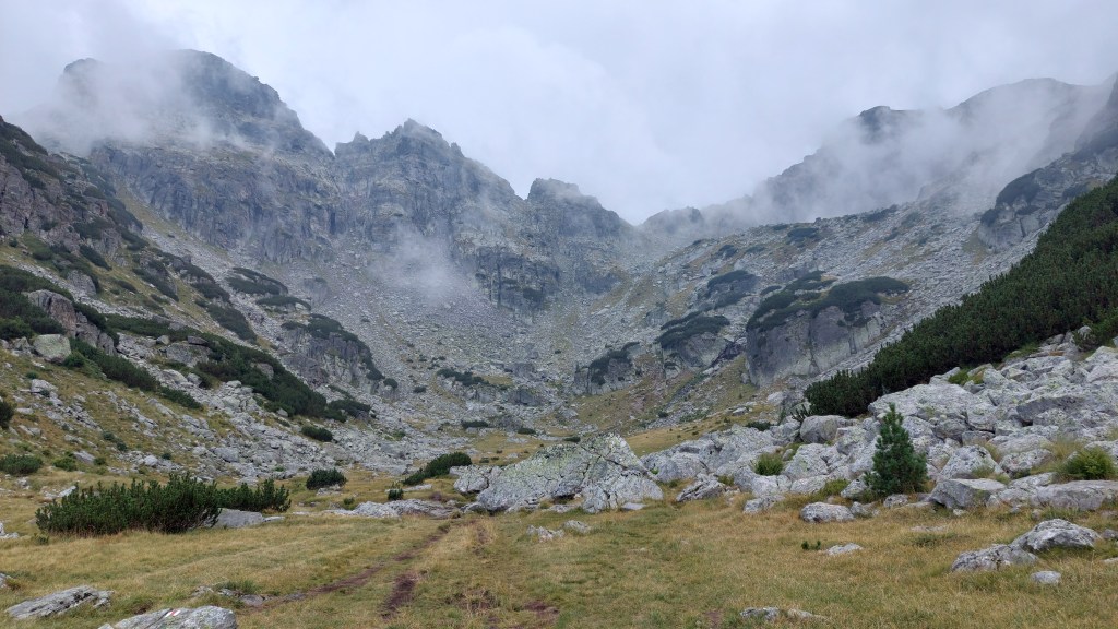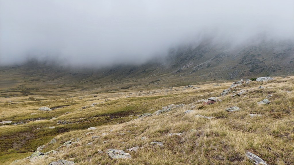 Ivan Vazov Hut is located in a valley, so it is fairly protected by the surrounding hills, but we weren’t going to stay there for the day. Nope – our path was right towards the fog.
