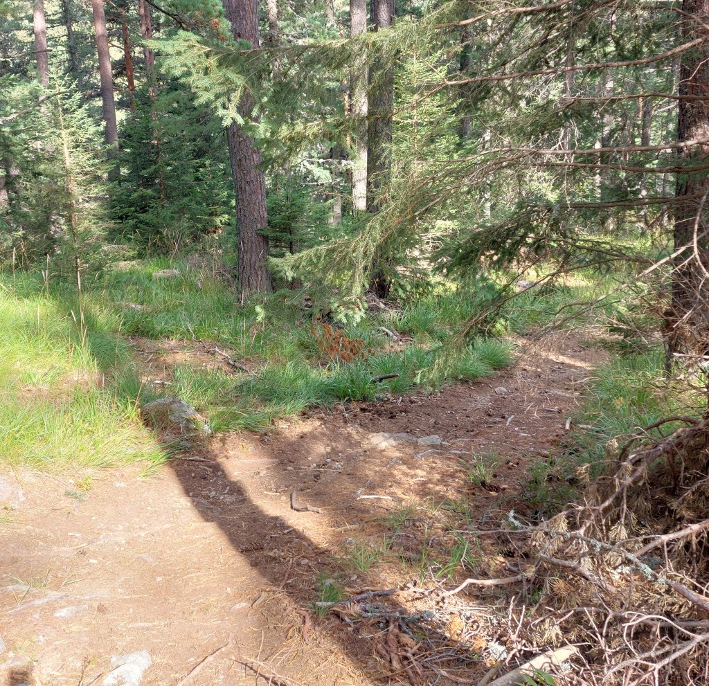 At the beginning of the trail, we were still in the woods, gradually ascending towards the lush meadows over 2,000 meters high. The air was still a little chilly, but the sky was clear, so the sun was already warming it up.