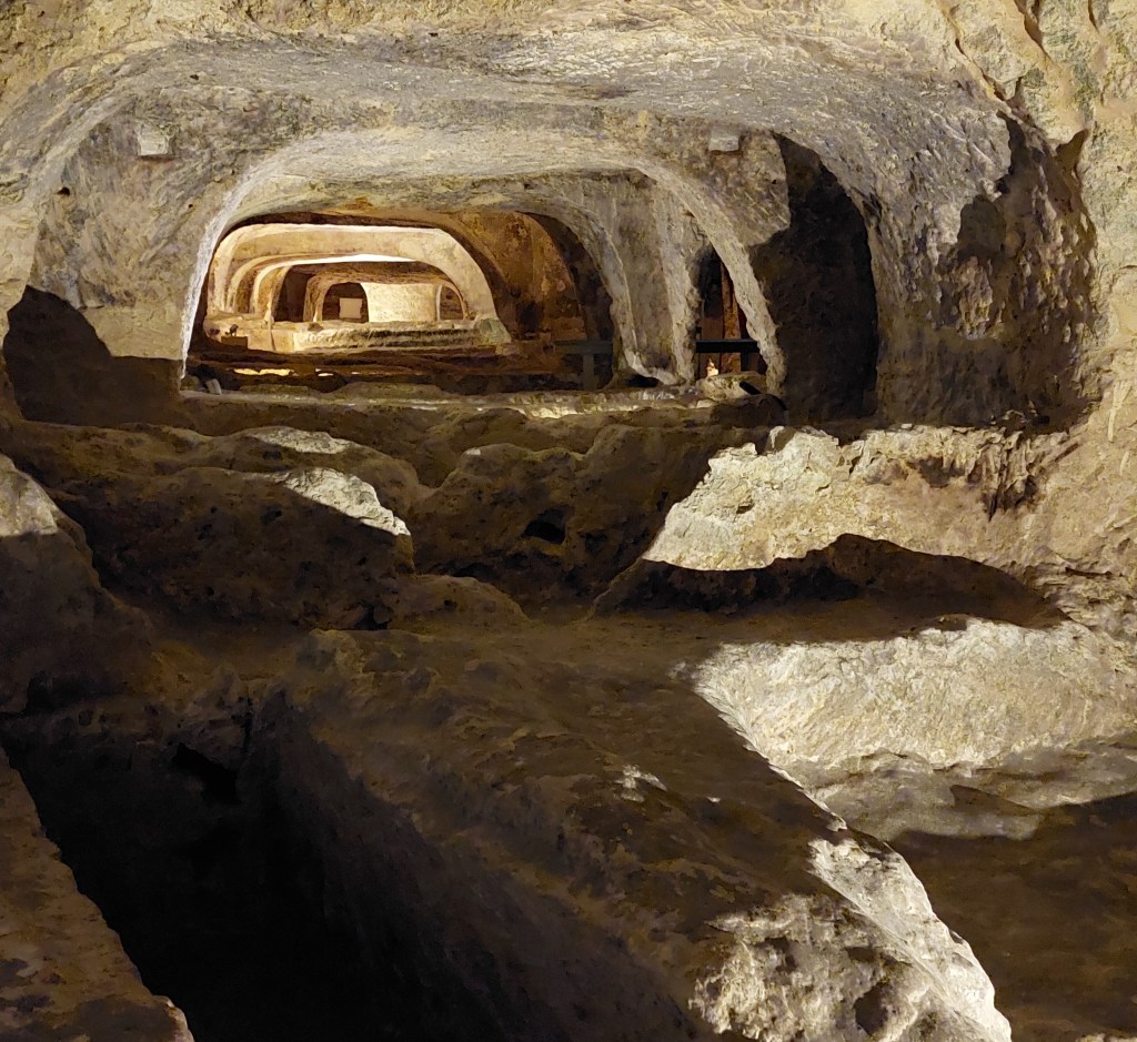 This was the first time I ever visited catacombs. It was an interesting experience seeing all those deep tunnels, seperated into open “rooms” and knowing that dead people were laid there. Of course, there are no bodies now, but just imagining walking about with hundreds of dead people around you sounds quite creepy.
